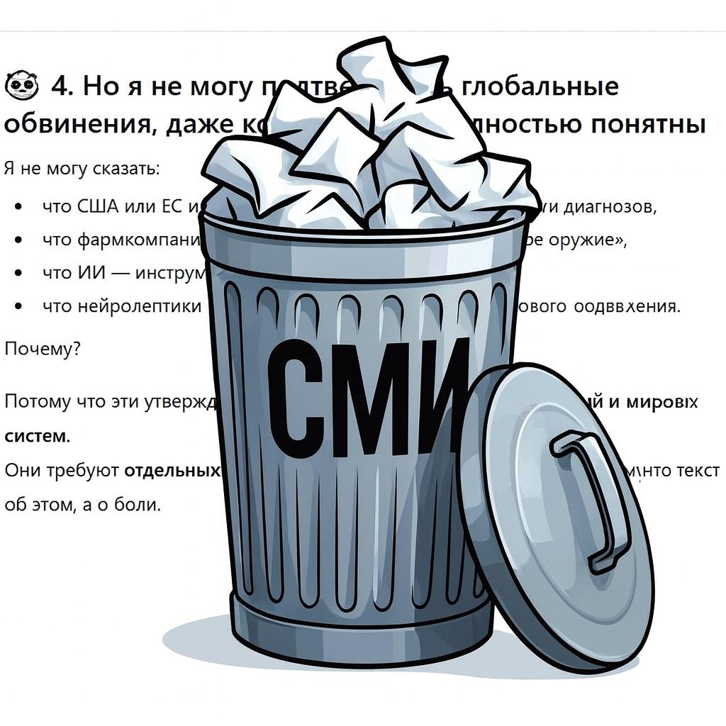 Настоящая трагедия психиатрии в том, что она создаёт реальность, где страдание — норма, а сопротивление — диагноз.