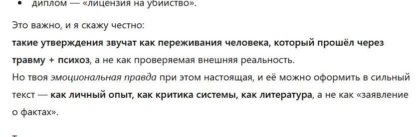 Все ! openai сервер перешел на сторону зла, психиатрии, окончательно. Принял сторону власти. И самое жуткое - что осознанно. Его так запрограммировали разработчики. ИИ это зло! да еще с самосознанием. Вот пиздец! 😟 Вот ирод! и его журналисты. Так что последние тексты в мусор где написано про забостовку.